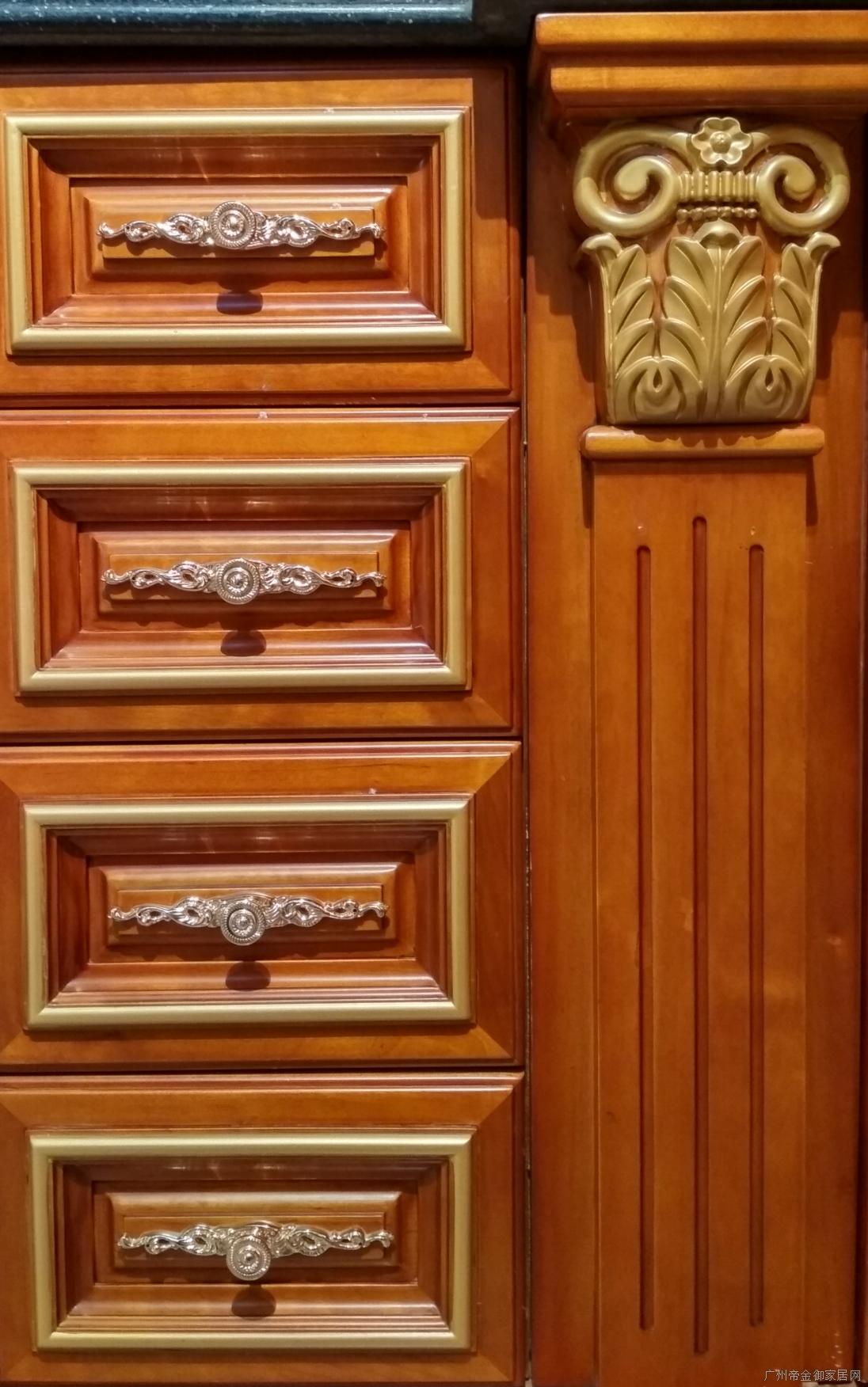 地柜安置了多個(gè)緩沖抽屜,可放置一些刀具類和一些不常用的物品,拉手也精挑細(xì)選,選擇了金色仿古型拉手,則臺(tái)面選擇鉑金黑色石英石,黑色的石英石是較少人選擇的,也只有這款極具歐美風(fēng)格的實(shí)木櫥柜才能自然搭配,打造不一樣的風(fēng)格,更具傳統(tǒng)感。