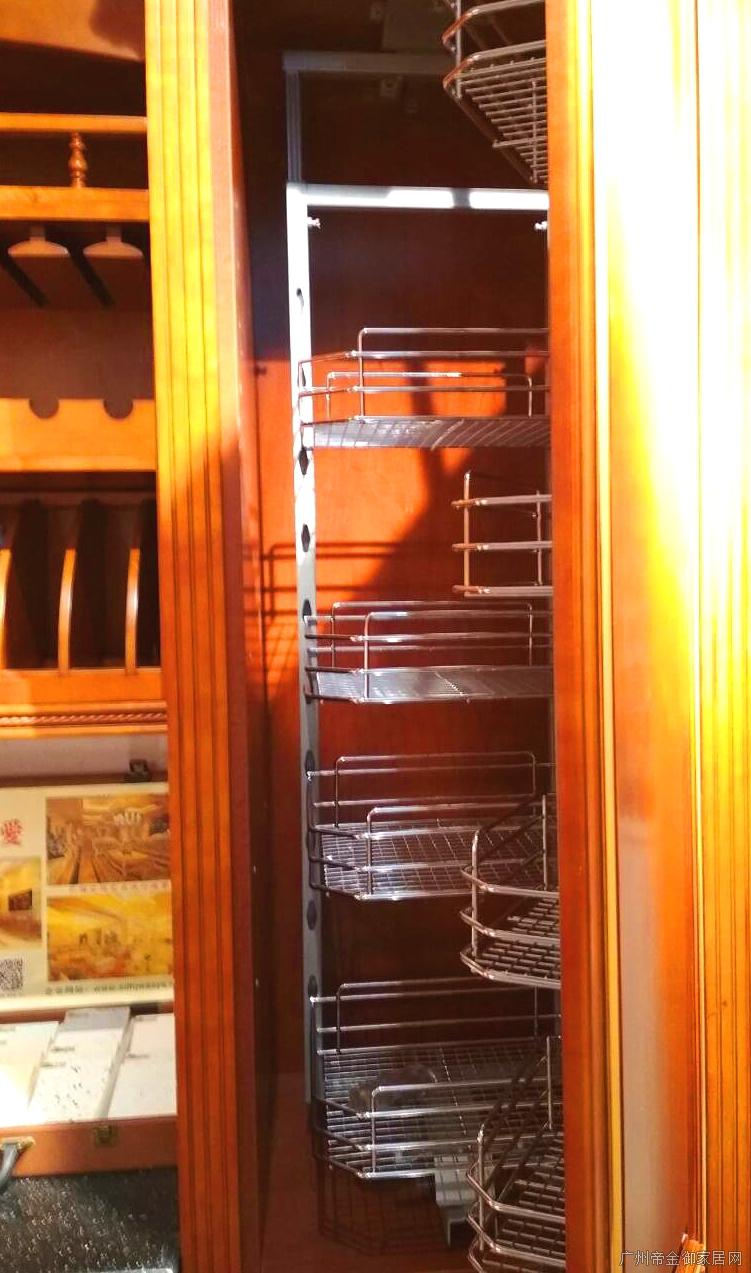 櫥柜右邊高柜安置了高品質(zhì)拐角拉欄,20萬(wàn)次開(kāi)合無(wú)聲無(wú)噪,可放置一些醬汁、調(diào)味醬還有一些不宜放入冰箱的干燥食品,高柜空間較大還可將一些不常用的物品也存放入高柜。