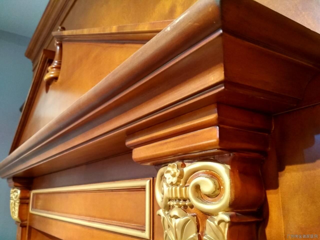 實(shí)木中間添加了四根羅馬柱,精心手工雕刻花紋,極大的增加美感。