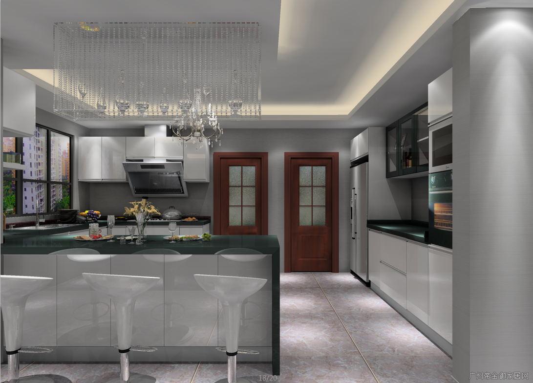 櫥柜左邊地柜延伸下來為吧臺(tái)在用餐階段可在此位置進(jìn)行用餐,櫥柜臺(tái)面設(shè)計(jì)往下延伸至地面符合當(dāng)下時(shí)尚設(shè)計(jì)標(biāo)準(zhǔn)。